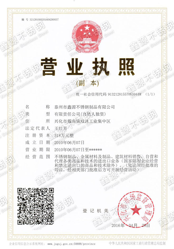 歡迎光臨泰州市鑫源不銹鋼制品有限公司!